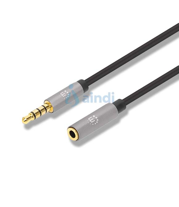 CABLE AUDIO ESTEREO, MANHATTAN, 356039, 3.5MM EXTEN. M-H 2.0M NEGRO/ALUMINIO PLATEADO